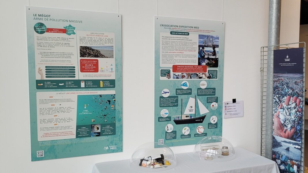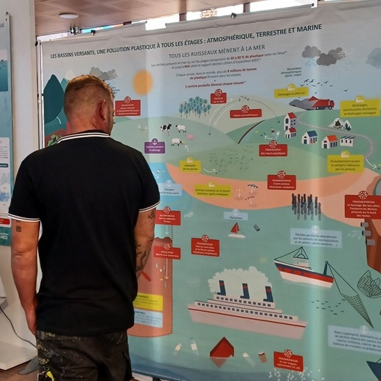 L’exposition « Océans et mers plastifiés » est un outil pédagogique et scientifique itinérant accessible à tous (des scolaires au grand public) et qui met en lumière les enjeux de la pollution plastique.