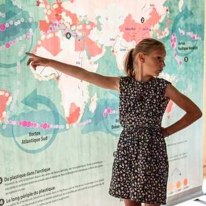 Une carte géante qui illustre d’une manière globale l’invasion des déchets plastiques dans l’océan mondial permet de prendre la mesure de l’envergure exceptionnelle de cette pollution. Les thèmes abordés : Un océan mondial plastifié. Des fleuves et rivières poubelles. Le long périple du plastique. Vortex de déchets. Du plastique dans l’arctique Plastique des profondeurs. La Méditerranée, un sixième vortex. Plastique disparu.